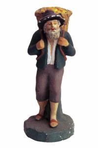 - NOTIZIE STORICO CRITICHE Statuetta da presepio rappresentante un anziano uomo recante sulle spalle una gerla contenente dei frutti, probabilmente delle mele. La figura è molto simile per atteggiamento e fisionomia alla statuetta da presepio con numero scheda r3040-00076