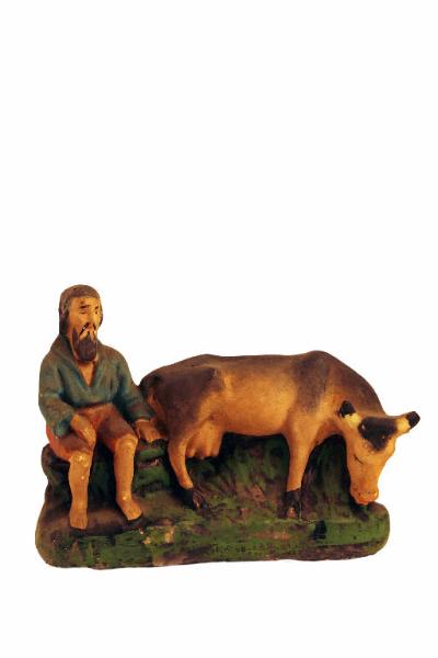 - NOTIZIE STORICO CRITICHE Statuetta da presepio raffigurante un pastore seduto accanto ad un toro.