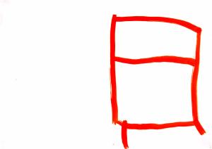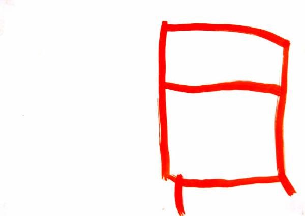 disegno ad acrilico acquerellato su carta. Colore: bianco e arancio. Soggetto: progetto di design - tavolo.