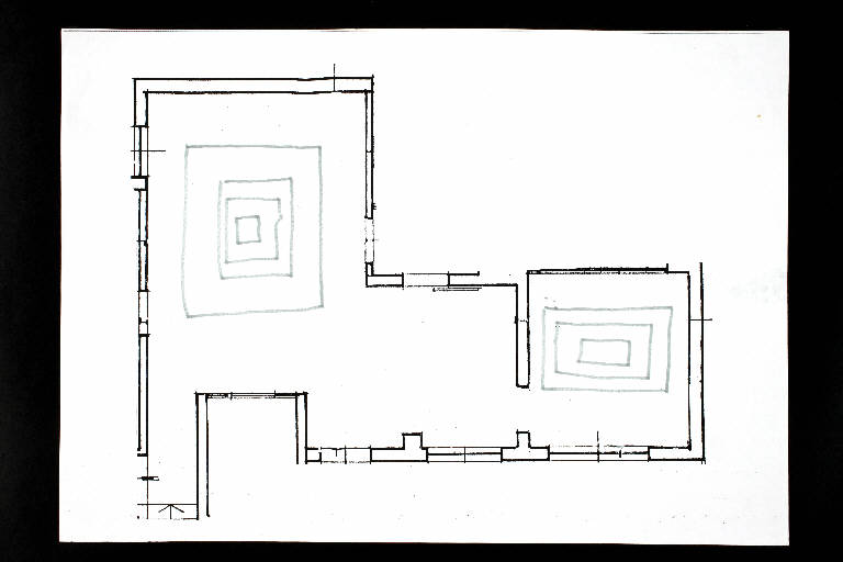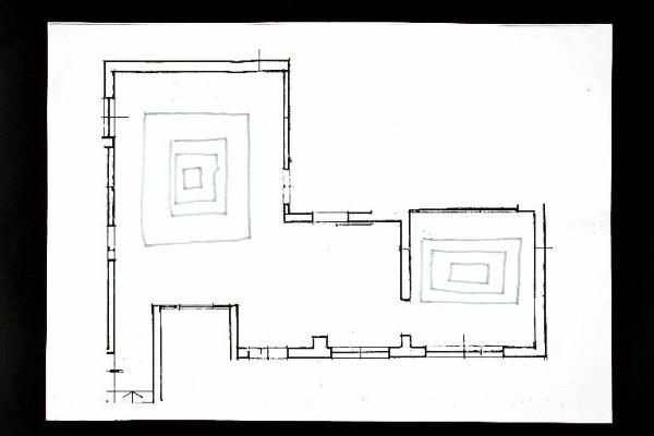 pennarello su fotocopia di carta bianca. Colore: nero, grigio. Soggetto: progetto di pavimento.