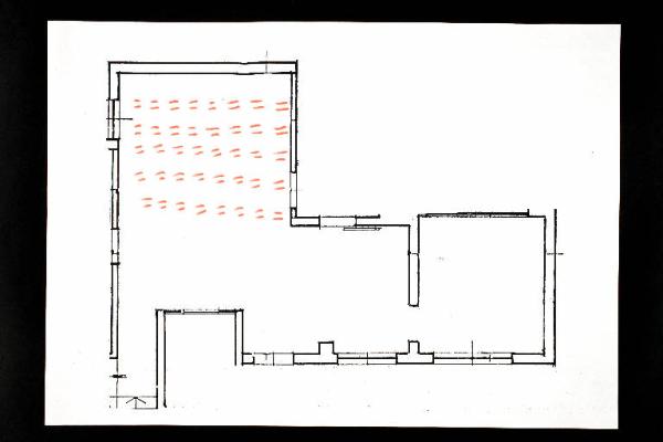 pennarello su fotocopia di carta bianca. Colore: nero, rosso. Soggetto: progetto di pavimento.