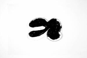 tecnica mista: pennarello e pastello a olio su carta bianca, ritagliata. Colore: nero. Soggetto: studio/bozzetto per tappeto.