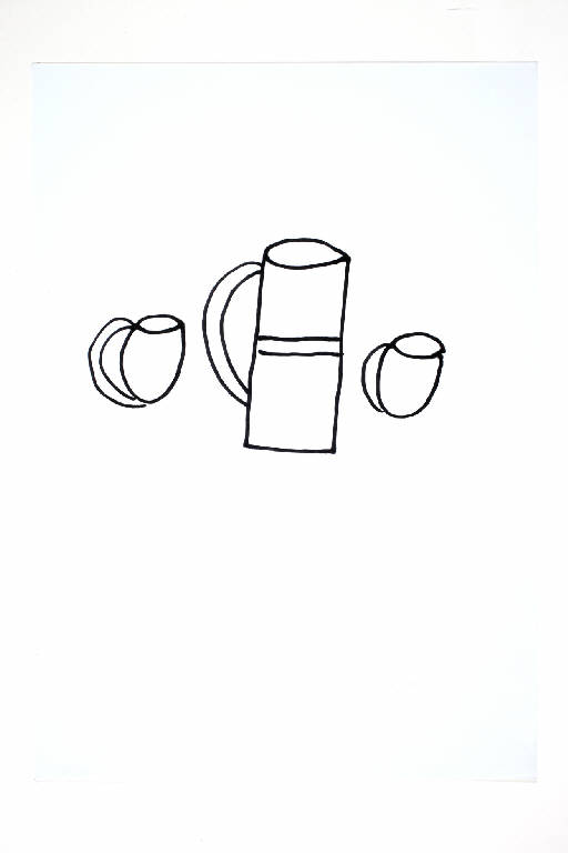 pennarello su carta bianca. Colore: nero. Soggetto: studio/bozzetto per caraffa e tazze.
