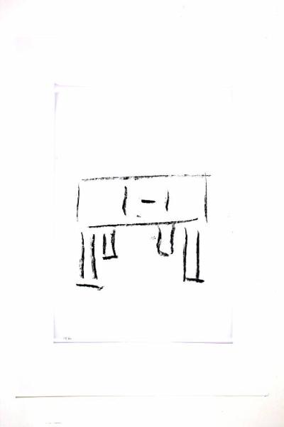 fusaggine su carta velina avorio. Colore: grigio chiaro, medio e scuro. Soggetto: progetto di design.