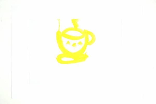 acrilico acquerellato su carta bianca. Colore: giallo. Soggetto: bozzetto per tazza da caffè/the.