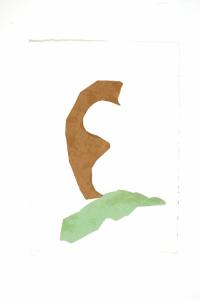 collage con cartoncino colorato e colla vinilica su cartoncino bianco. Colore: marrone chiaro, verde oliva chiaro. Soggetto: elemento decorativo.