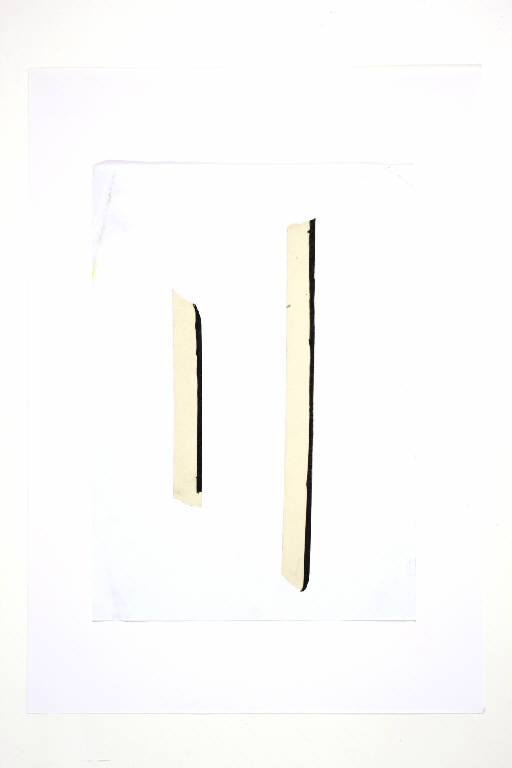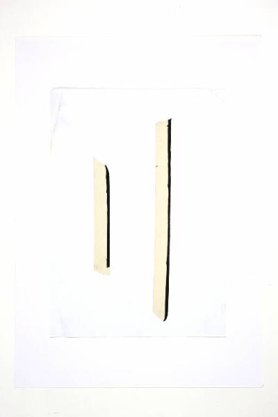 collage con scotch di carta e pennarello su carta bianca. Colore: nero, beige. Soggetto: elemento decorativo.