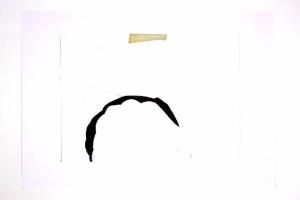 collage di cartoncino, scotch di carta e colla vinilica su carta bianca. Colore: grigio medio, avorio. Soggetto: elemento decorativo.