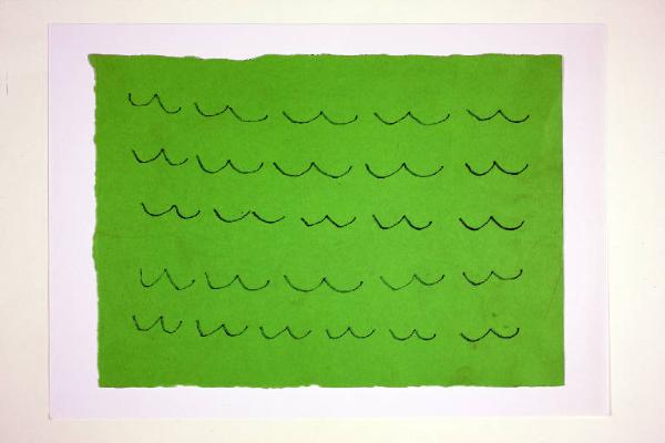 pennarello su cartoncino colorato. Colore: verde chiaro, verde scuro. Soggetto: elemento decorativo.