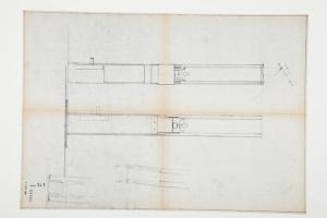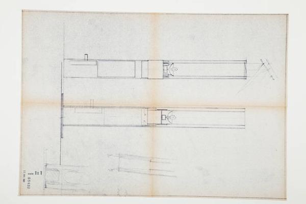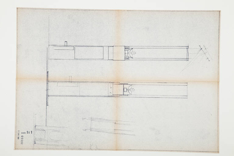 Copia su carta da lucido di due sezioni della lampada Gibigiana ancora in fase di progetto ed interventi a matita dell'architetto Achille Castiglioni.