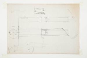 Copia su carta da lucido raffigurante due sezioni della lampada Gibigiana ancora in fase di progetto con alcuni interventi dell'arch. Achille Castiglioni.