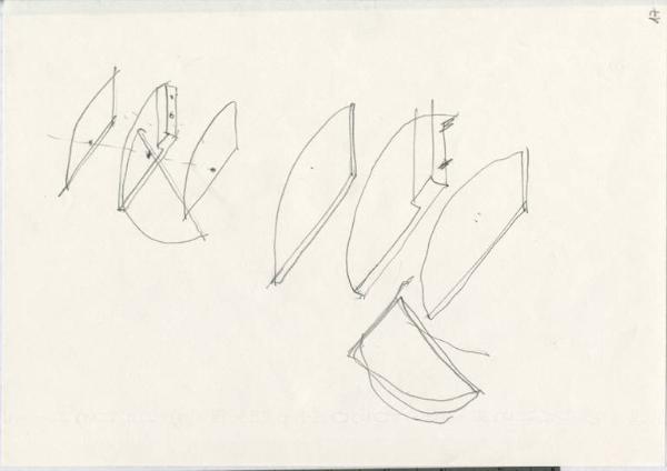 Schizzi in matita di particolari della lampada da tavolo Gibigiana.