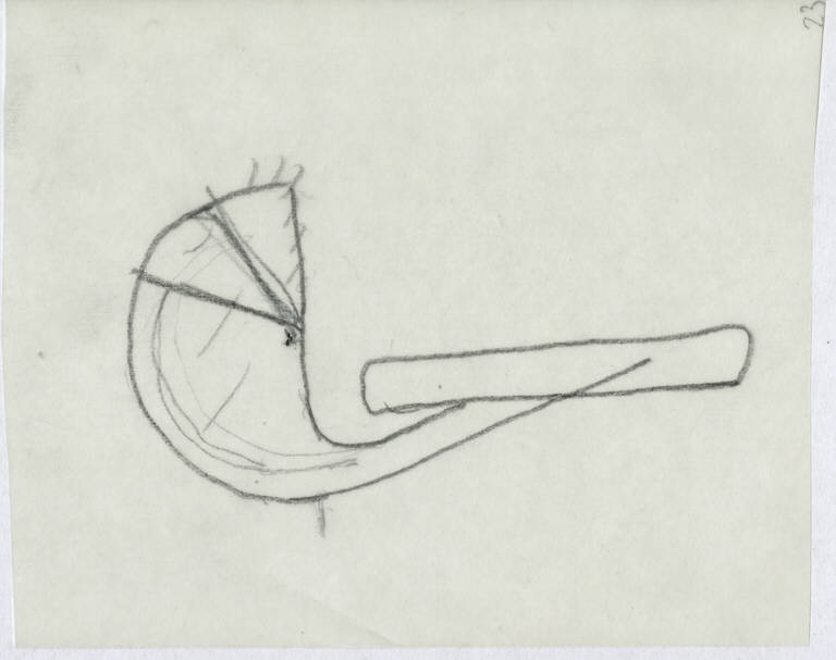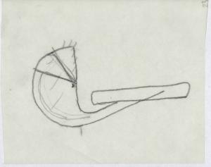 Schizzo in matita di un particolare - copertura - della lampada da tavolo Gibigiana.