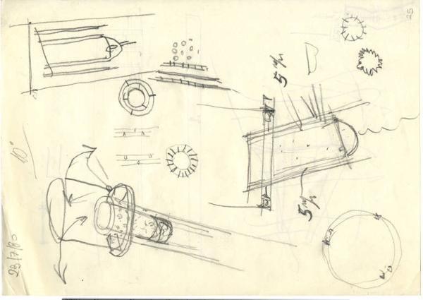 Schizzi in matita di particolari della lampada da tavolo Gibigiana.