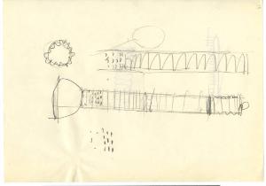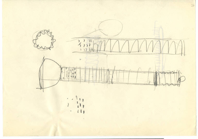 Schizzi in matita di particolari della lampada da tavolo Gibigiana.