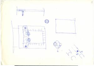 Schizzi in penna blu di particolari della lampada da tavolo Gibigiana.