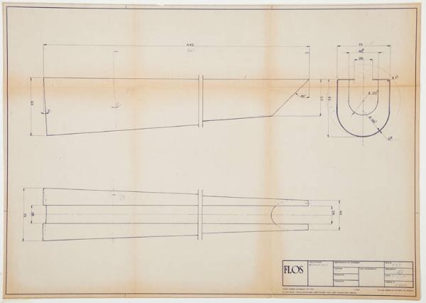 Tavola tecnica raffigurante pianta e sezioni della scocca esterna della lampada Gibigiana
