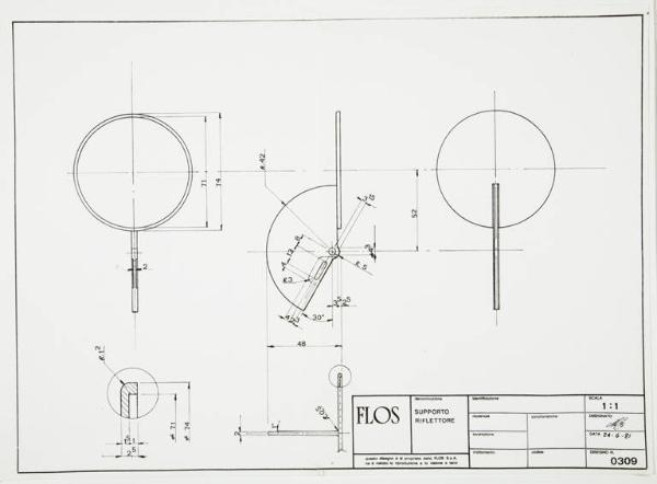 Tavola tecnica raffigurante sezioni della guancia sinistra della lampada Gibigiana