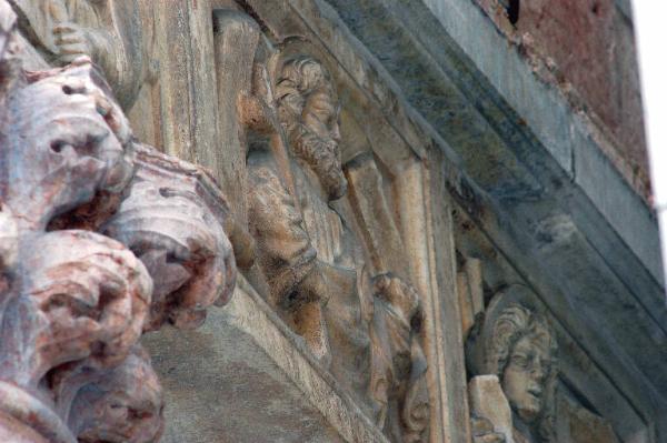 - NOTIZIE STORICO CRITICHE Il rilievo, come l'intero architrave, è stato con ogni probabilità realizzato in anni più tardi rispetto all'esecuzione del protiro: non mostra, infatti, i caratteri stilistici in uso presso la bottega di Giovanni da Campione; l'ipotesi più accreditata è che l'architrave sia stato sostituito verso la fine del secolo, a causa di danni subiti durante alcuni eventi meteorologici di forte intesità testimoniati dalle cronache nel 1382 e nel 1389; i documenti della Basilica di Santa Maria Maggiore conservano alcuni pagamanti per riparazioni versati ad Andreolo de' Bianchi e alla sua bottega, ma è difficile confermare questo nome per i rilievi dell'archirave, in assenza di opere sicure di rifermento (Lomartire, 2009, pp. 68-69).\nL'opera è stata restaurata tra il 1997 e il 1998 (si veda la relazione tecnica preliminare in data 30 luglio 1996, pratica 4816, cart. 75, Archivio della Congregazione della Misericordia Maggiore, Bergamo).