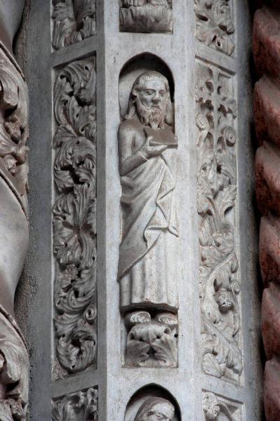 - NOTIZIE STORICO CRITICHE Il rilievo del semipilastro, come l'intera struttura del portale, è stato realizzato dalla bottega di Giovanni da Campione tra il 1350 e il 1360 circa.\nL'opera è stata restaurata tra il 1997 e il 1998 (si veda la relazione tecnica preliminare in data 30 luglio 1996, pratica 4816, cart. 75, Archivio della Congregazione della Misericordia Maggiore, Bergamo).