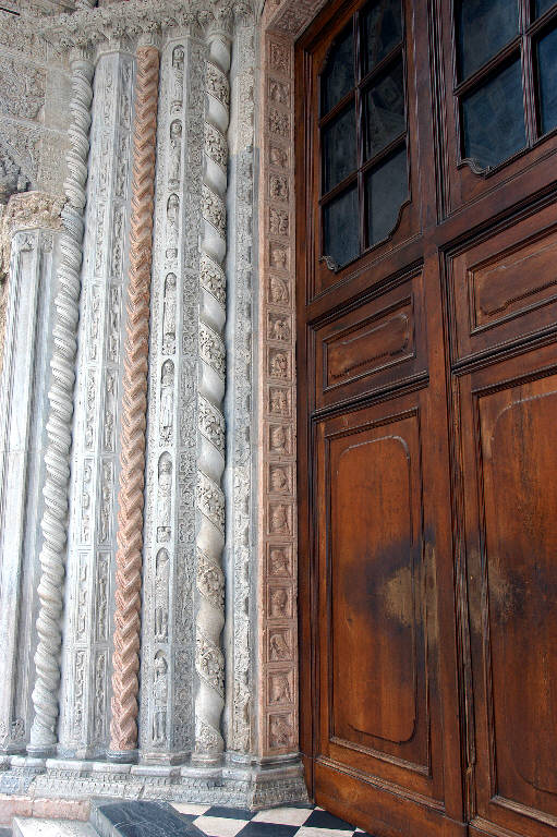 - NOTIZIE STORICO CRITICHE Lo stipite, come l'intera struttura del portale, è stato realizzato dalla bottega di Giovanni da Campione tra il 1350 e il 1360 circa.\nL'opera è stata restaurata tra il 1997 e il 1998 (si veda la relazione tecnica preliminare in data 30 luglio 1996, pratica 4816, cart. 75, Archivio della Congregazione della Misericordia Maggiore, Bergamo).