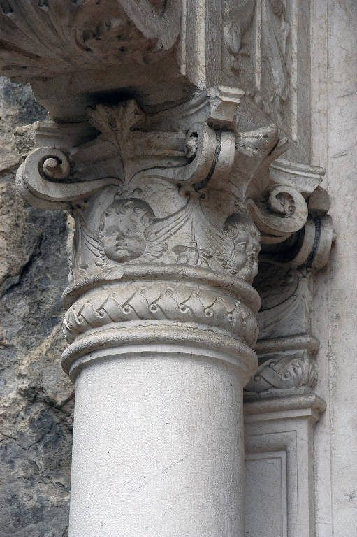 - NOTIZIE STORICO CRITICHE Il capitello, come l'intero portale detto "della Fontana" (prope Fontem), è stato probabilmente eseguito nella bottega dell'archittto bergamasco Pietro Isabello verso il 1521 (cfr. P. Pesenti, 1953, p. 30; S. Angelini, 1968, p. 37).