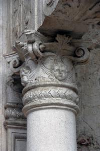 - NOTIZIE STORICO CRITICHE Il capitello, come l'intero portale detto "della Fontana" (prope Fontem), è stato probabilmente eseguito nella bottega dell'archittto bergamasco Pietro Isabello verso il 1521 (cfr. P. Pesenti, 1953, p. 30; S. Angelini, 1968, p. 37).