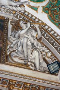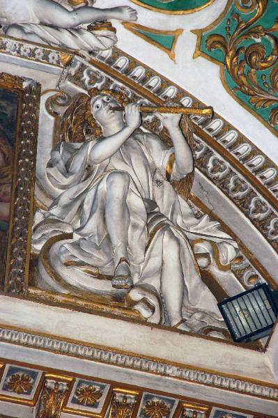 - NOTIZIE STORICO CRITICHE Il rilievo, come l'intera decorazione a stucco della lunetta che racchiude l'affresco con l'episodio biblico di "Dio che maledice il serpente" dipinto da Ciro Ferri tra il 1666 e il 1667, fu eseguito tra il 1659 e il 1665 da Giovanni Angelo Sala, in collaborazione con il figlio Gerolamo (Rampinelli, 2001; Spiriti, 2009).