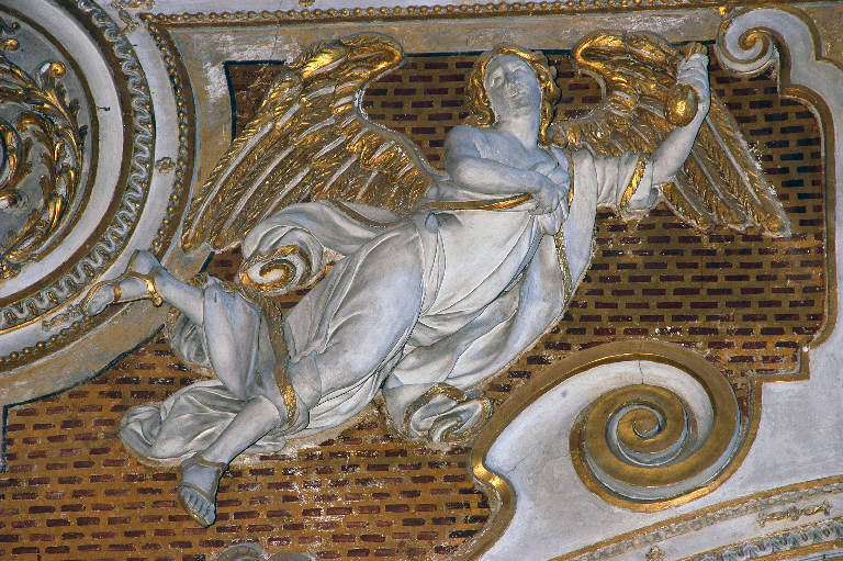 - NOTIZIE STORICO CRITICHE La vicenda della decorazione della Basilica di Santa Maria Maggiore è assai bene documentata dai pagamenti conservati nei libri contabili della Congregazione della Misericordia Maggiore, che permettono di seguire quasi ad annum le fasi del cantiere (Rampinelli, 2001; Spirirti, 2009): agli stucchi della navata centrale lavorarono, tra il 1675 e il 1679, Giovanni Angelo Sala e il figlio Gerolamo, artisti ticinesi d'origine, impegnati negli stessi anni in numerosi altri cantieri bergamaschi; valga per tutti l'impresa delle meravigliose sagrestie della Basilica di San Martino ad Alzano Lombardo (cfr. M. Olivari in "Le sagrestie di Alzano Lombardo nella Basilica di San Martino", Cinisello Balsamo 1994, pp. 19-22). Le grandi figure di angeli che ornano gli spazi sopra gli archi non sono esplicitamente citate nei documenti della Basilica, ma è assai probabile che siano state anch'esse eseguite nelle stesse date.