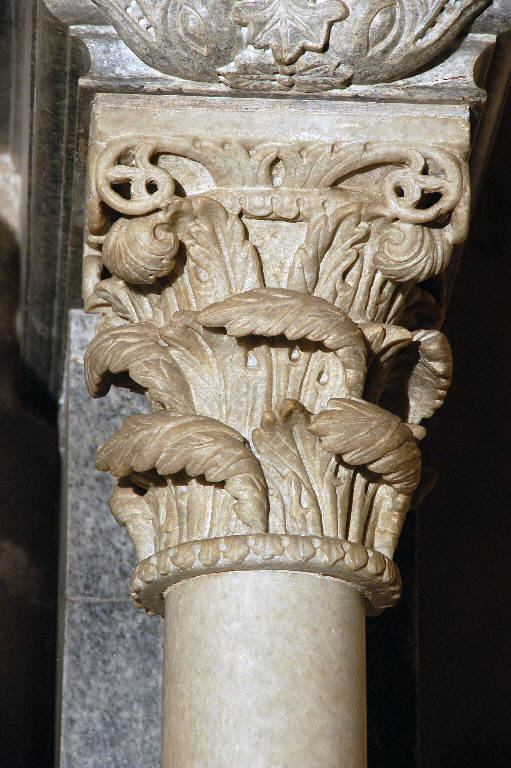 Capitello d'ordine corinzio ornato da motivo a larghe foglie d'acanto.
