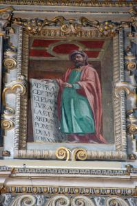 - NOTIZIE STORICO CRITICHE La figura di Giobbe, come tutte le altre che ornano il tamburo della cupola, è stata eseguita da Giovan Paolo Cavagna tra il 1615 e il1616 (L. Bandera, in "I pittori bergamaschi...Il Cinquecento", vol. IV, p. 136 e pp. 180-181, scheda 26) .\nL'opera è stata restaurata nel 1961 da Franco Steffanoni (cfr. doc. in data 5/ 12/ 1961, protoc. 2579, pratica 4643, cart. 89, Archivio Congregazione Misericordia Maggiore, Bergamo).