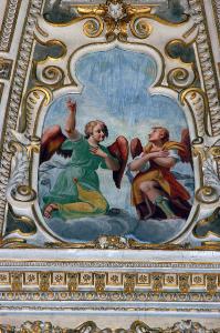 - NOTIZIE STORICO CRITICHE Il riquadro con figure di angeli è stato eseguito tra il 1615 e il 1616 da Giovan Paolo Cavagna (L. Bandera, in "I pittori bergamaschi...Il Cinquecento", vol. IV, p. 136 e pp. 180-181, schede 25-27). \nL'opera è stata restaurata nel 1961 da Franco Steffanoni (cfr. doc. in data 5/ 12/ 1961, protoc. 2579, pratica 4643, cart. 89, Archivio Congregazione Misericordia Maggiore, Bergamo).