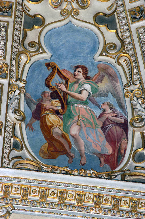 - NOTIZIE STORICO CRITICHE Il riquadro con figure di angeli è stato eseguito tra il 1615 e il 1616 da Giovan Paolo Cavagna (L. Bandera, in "I pittori bergamaschi...Il Cinquecento", vol. IV, p. 136 e pp. 180-181, schede 25-27). \nL'opera è stata restaurata nel 1961 da Franco Steffanoni (cfr. doc. in data 5/ 12/ 1961, protoc. 2579, pratica 4643, cart. 89, Archivio Congregazione Misericordia Maggiore, Bergamo).