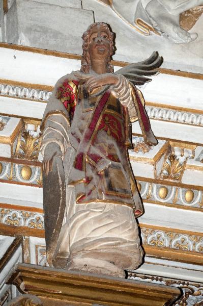 - NOTIZIE STORICO CRITICHE La statua di San Vincenzo posta al centro dell'architrave della cassa d'organo a destra. Non è stato possibile verificarne in modo ravvicinato la materia e tecnica. Si ipotizza che le due casse d'organo ubicate sui lati del presbiterio (nn. foto 1015, 1017) siano state realizzate nel corso del Seicento da una bottega locale. All'interno venne ubicato l'organo Vegezzi Bossi costruito nel 1915. Restaurato nel 1948 dalla ditta F.lli Ruffatti, l'organo mantenne inalterate le proprie caratteristiche fancendone uno dei pochi strumenti ad avere ancora l¿impronta e la fonica originale del maestro piemontese.