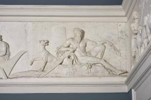- NOTIZIE STORICO CRITICHE Si tratta di una delle trentatré lastre di cui si compone il grandioso fregio con “L'ingresso di Alessandro Magno in Babilonia” che Bertel Thorvaldsen esegue in marmo per Giovanni Battista Sommariva tra il 1818 e il 1828 e che risulta allestito nel Salone della villa di Tremezzo nel 1829, dunque solo in seguito alla scomparsa del committente. Una prima versione in stucco del fregio risale al 1812 ed è quella modellata dallo scultore per il Palazzo del Quirinale a Roma a celebrazione del pacifico ingresso nell’Urbe di Napoleone. La versione di Villa Carlotta è la sua traduzione in marmo in scala monumentale in principio commissionata a Thorvaldsen da Bonaparte e destinata al Temple de la Gloire di Parigi. Con la caduta di Napoleone la commissione venne rilevata da Sommariva che ne richiese il completamente per la sua villa di Tremezzo. Successive sono invece le due repliche romane, quella in marmo per Palazzo Torlonia e quella in gesso per il Casino di Villa Torlonia, e la versione eseguita in marmo per Christiansborg a Copenhagen.