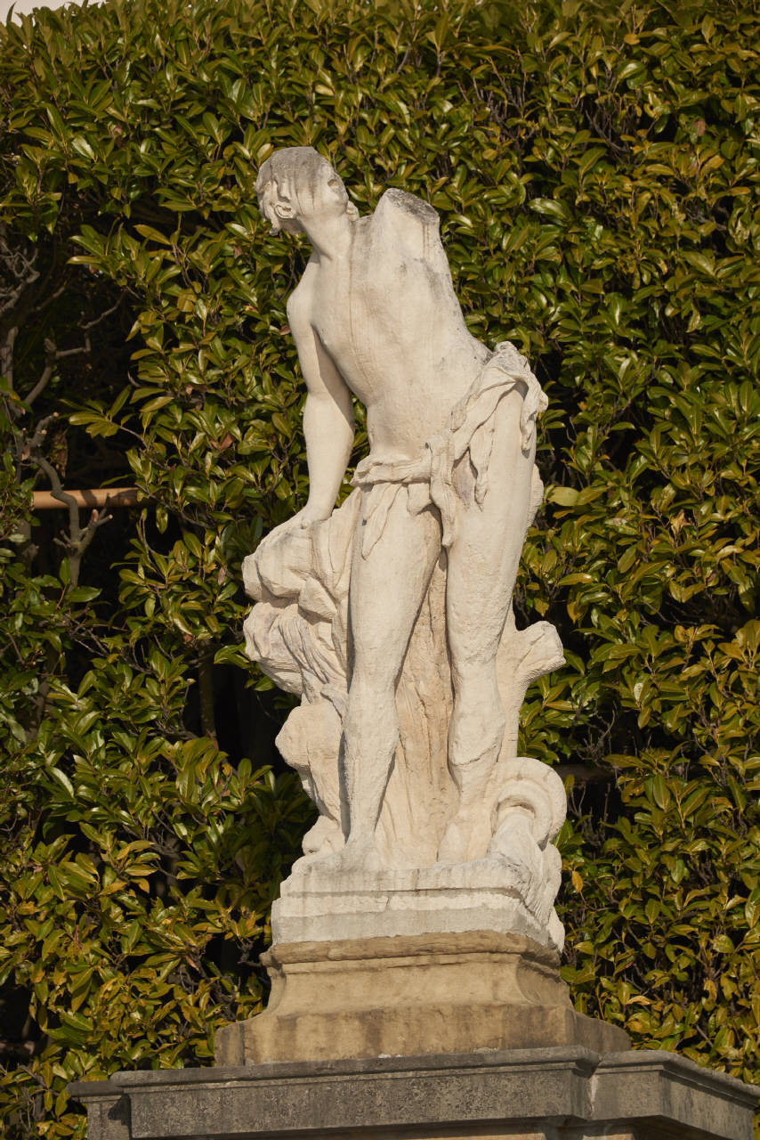 - NOTIZIE STORICO CRITICHE Si tratta di una delle dodici sculture che ornano la balaustra d'ingresso della villa che risultano documentate già nel XVIII secolo, come attestano le incisioni pubblicate da Marc' Antonio Dal Re nel volume "Ville di Delizia" (1743). Tuttavia, la resa grafica delle stampe non consente un'identificazione certa e inequivocabile con le statue attualmente in loco (Zanuso 2019). Per caratteri stilistici, le opere sono attribuibili allo scultore padovano Antonio Bonazza, assistito dalla sua bottega. L'iscrizione sul basamento non è più leggibile, ma sembra riferirsi ad Aci, il pastore identificato con Eco (Mazzocca 1983). Questa figura rientra nelle rappresentazioni mitologiche presenti nella serie (Zanuso 2019).