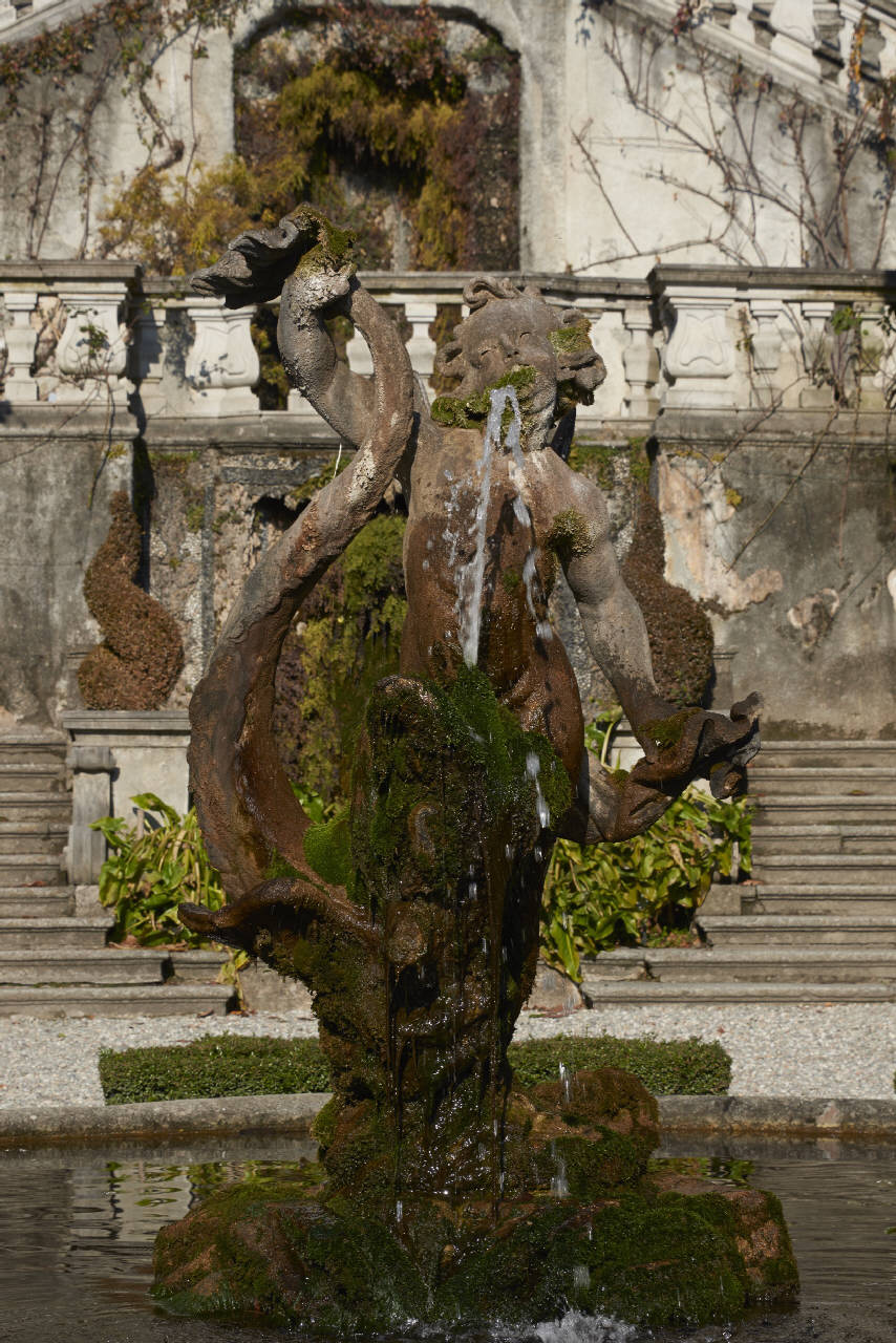 - NOTIZIE STORICO CRITICHE La statua, che corona la fontana situata nel giardino anteriore della villa, risale al XVIII secolo, come testimoniato dalle incisioni di Marc' Antonio del Re del 1743, nelle quali è raffigurata la villa tra le residenze nobiliari lombarde. L'assenza dell'attributo iconografico della lira rende incerta l'identificazione tradizionale del soggetto con Arione di Metimna. Tuttavia, la figura si inserisce con naturalezza nel contesto della scultura lombarda del primo Settecento e sembra essere riconducibile all'ambito di Carlo Francesco Mellone, scultore attivo in quegli anni, soprattutto per il Duomo di Milano. Sebbene l'attribuzione non sia certa, l'affinità stilistica con i "Putti" in bronzo provenienti da Palazzo Annoni, il cui modello è stato attribuito al Mellone (Zanuso 2013), suggerisce una condivisione delle caratteristiche del tardo barocco lombardo (Zanuso 2019).