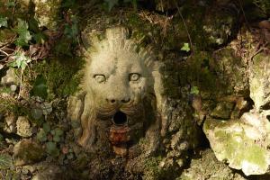 Bocca di fontana: testa leonina in pietra con fauci dischiuse.