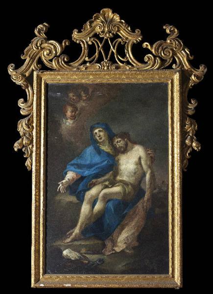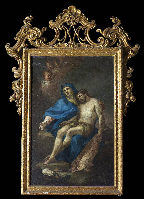 - NOTIZIE STORICO CRITICHE La cornice è pertinente al dipinto raffigurante la Madonna con Cristo morto di Sante Catteneo, proveniente dalla Chiesa della Pietà dell'antico orfanotrofio femminile, poi occupato dall'Ospedale maggiore alla fine del XVIII secolo.