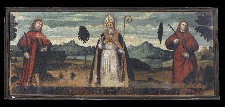 - NOTIZIE STORICO CRITICHE Allo stato attuale delle ricerche, non si conosce l'ubicazione originaria del dipinto che, come ipotizzato da Francesco De Leonardis (2003) poteva far parte dell'apparato decorativo dell'altare sottostante all'arca di San Tiziano, prezioso manufatto di scultura realizzato nel primo ventennio del XVI secolo per custodire le reliquie del santo vescovo bresciano. Con la realizzazione dell'altare seicentesco, ancora in loco, il dipinto venne trasferito nell'aula della chiesa, probabilmente sulla controfacciata. La tradizionale attribuzione a Paolo da Cailina il Giovane viene smentita da Luciano Anelli (2002) che avvicina il dipinto ai modi di Floriano Ferramola, mentre è confermata da De Leonardis (2003), che avvicina l'opera alla pala della chiesa di santa Maria delle Grazie a Brescia.