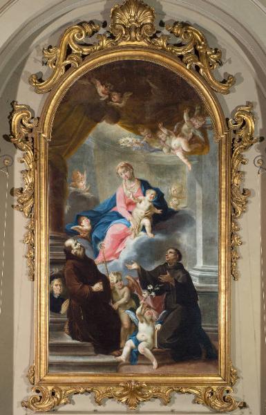 - NOTIZIE STORICO CRITICHE La ricca cornice barocchetta fu realizzata nella prima metà del Settecento contestualmente alla pala che contiene, raffigurante la Madonna in trono con Bambino, San Francesco da Paola e Sant'Antonio da Padova.