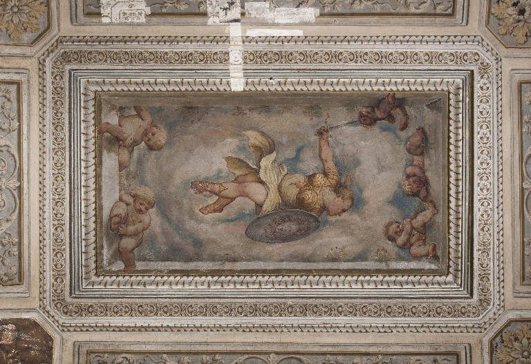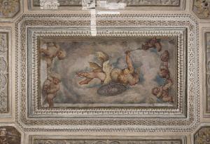 - NOTIZIE STORICO CRITICHE Il dipinto murale raffigurante Minerva è collocato sulla volta di una saletta contigua a quelle che ospitano gli affreschi di Gambara e Romanino realizzati fra il 1550 e il 1555. Nonostante ciò è sempre stato ignorato dalla critica fino alla segnalazione di Lechi che, però, si limita ad identificarne il soggetto senza collegarlo all'apparato decorativo cinquecentesco degli ambienti vicini. A pubblicarlo per la prima volta è Alessandro Nova che vi legge l'intervento autonomo del Romanino e lo inserisce a pieno titolo nella campagna decorativa cinquecentesca di Palazzo Averoldi.