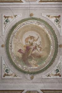 • NOTIZIE STORICO CRITICHE Nel 1782 muore Vincenzo Averoldi, ultimo erede in linea diretta maschile del casato Averoldi che aveva fondato e fatto costruire il palazzo di via Moretto e contrada Santa Croce a metà del XVI secolo. L'edificio e tutto il suo ricco contenuto passano per via ereditaria femminile (da Barbara Averoldi, sorella di Vincenzo sposata con Ferdinando Chizzola, del ramo di Erbusco) a Giuseppe e Faustino Chizzola. Assumendo anche il cognome Averoldi, i due fratelli si stabiliscono nel palazzo bresciano e avviano importanti lavori di ammodernamento e ristrutturazione del palazzo documentati dal 1787/88 fino alla fine degli anni Novanta del Settecento. Questo intervento è finalizzato ad adeguare la dimora signorile alle nuove tendenze dell'architettura francese estremamente attente alla distribuzione degli spazi interni e al rapporto fra forma, funzione, decorazione. Nell'ambito di questo intervento edilizio viene integrato nel corpo di fabbrica centrale un edificio già esistente nell'angolo nord-estdella fabbrica e vi si ricava un appartamento privato studiato per integrare e completare l'appartamento da parata. Ne fanno parte diversi ambienti di dimensioni piuttosto contenute, ma che conservano l'originaria decorazione ad affresco che presumibilmente fu realizzata nell'ultimo decennio del XVIII secolo. Si può ipotizzare, con una certa sicurezza, pur in mancanza di espliciti riferimenti documentari che l'autografia dei dipinti sia da ricondurre ai pittori, quadraturisti e decoratori già attivi e documentati nel resto del palazzo. Stefania Cretella riconduce a Giuseppe Teosa anche la decorazione pittorica di un piccolo ambiente che si trova a fianco della Sala del Camino. Grazie ad un inventario del 1828, sappiamo che gli affreschi tuttora esistenti erano completati, nella parte inferiore della pareti, da un rivestimento di pannelli di legni e specchi che ne facevano un raffinato "camerino degli specchi". Dato il tema icongrafico delle scene narrative che lo contraddistinguono legate a Cupido e all'infanzia, si può presumere che questo ambiente e quelli limitrofi che compongono l'appartamento privato, fossero di pertinenze di una signora di casa Averoldi.