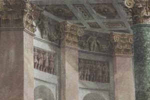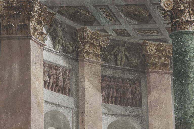 Al si sopra delle nicchie sono inseriti due partiti decorativi che imitano un bassorilievo raffigurante un corteo.