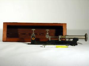 L'oggetto è costituito da un dinamometro e dalla relativa cassetta di protezione con coperchio anteriore a vetro. Lo strumento è formato da una base in ferro con tre sedi per le viti di fissaggio ad un piano di lavoro. Nella parte sinistra una coppia di ferma-tessuto a vite. A destra un alberino in acciaio graduato da 50 a 0 (da sx a dx), un supporto solidale alla base e un secondo albero, in ottone, graduato da 45 a 0: quest'ultimo è inserito in un tubo di acciaio da cui può fuoriuscire interamente, anche per una parte non graduata, per il graduale azionamento del volantino. I due alberini erano originariamente solidali ed azionati dal volantino. Su un fianco porta la scritta, dipinta in oro: "Dynamomètre pour tissus" e un marchio, sempre dipinto in oro, formato da un ovale con una testa di moro e le lettere "L.J.T."