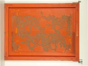 L'oggetto è costituito da una cornice di legno sulla quale è teso e fissato con chiodi il buratto fotoinciso. Due viti metalliche alle estremità di un lato corto servono per fermare il quadro nelle apposite sedi fissate lungo la guida in ferro che corre parallela al tavolo da stampa: la loro funzione è segnare il rapporto del quadro. Il buratto è dipinto a mano e ciò rende "piatto" cioè privo di sfumature il risultato del loro uso a stampa.