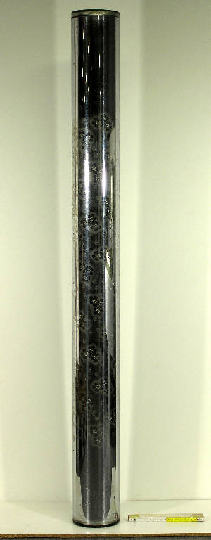Cilindro in rame cromato, con incisione superficiale (per elettrolisi) con motivo a fiori
