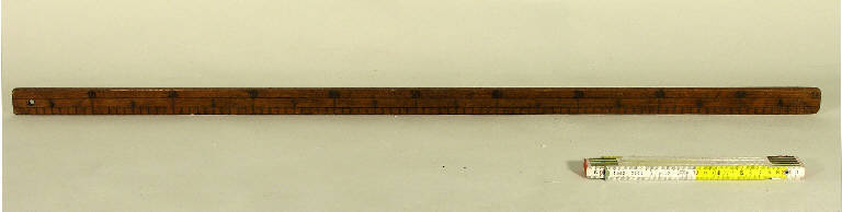 L'oggetto è costituito da un listello di legno accuratamente levigato, con graduazione ogni centimetro e numerazione ogni 10 centimetri