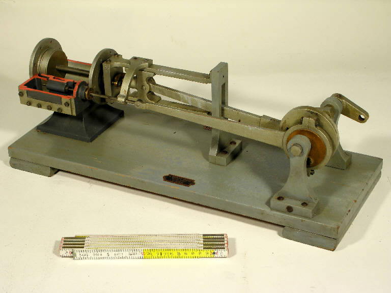 L'oggetto è un modellino didattico che illustra (?) il principio di funzionamento della macchina a vapore. Etichetta metallica: "G. Costa e Giraudo - Modellatori - Torino"