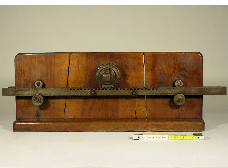 L'oggetto è un modellino didattico che illustra la trasformazione di un movimento rotatorio in rettilineo e viceversa tramite un meccanismo pignone-cremagliera